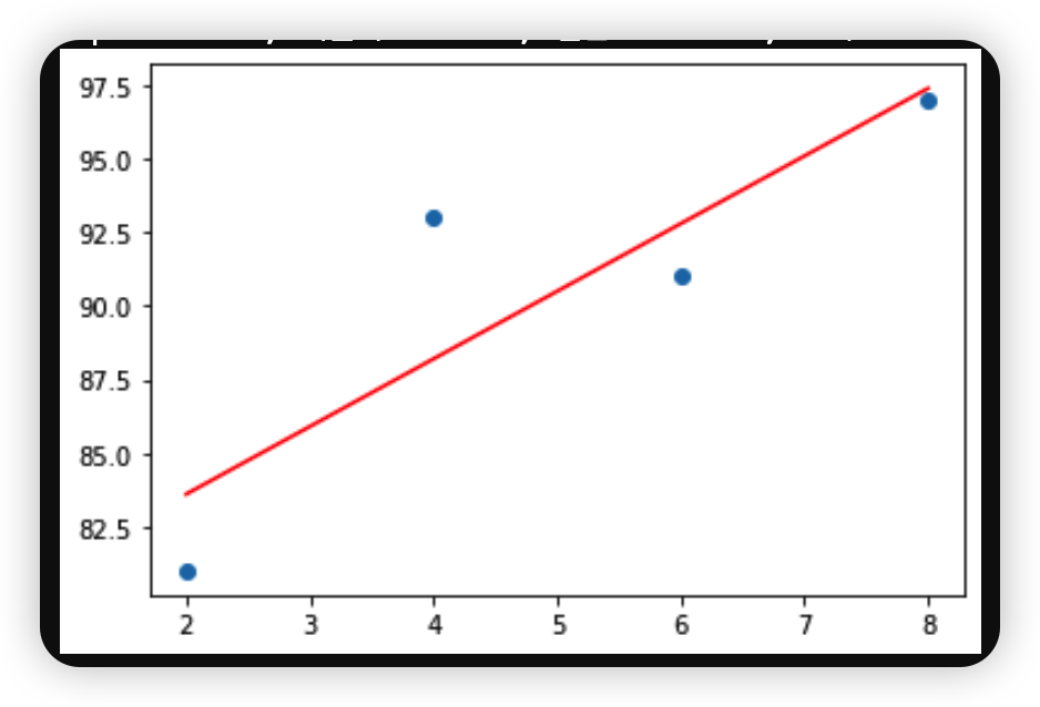 # 공부시간=8, 실제점수=97, 예측점수=100