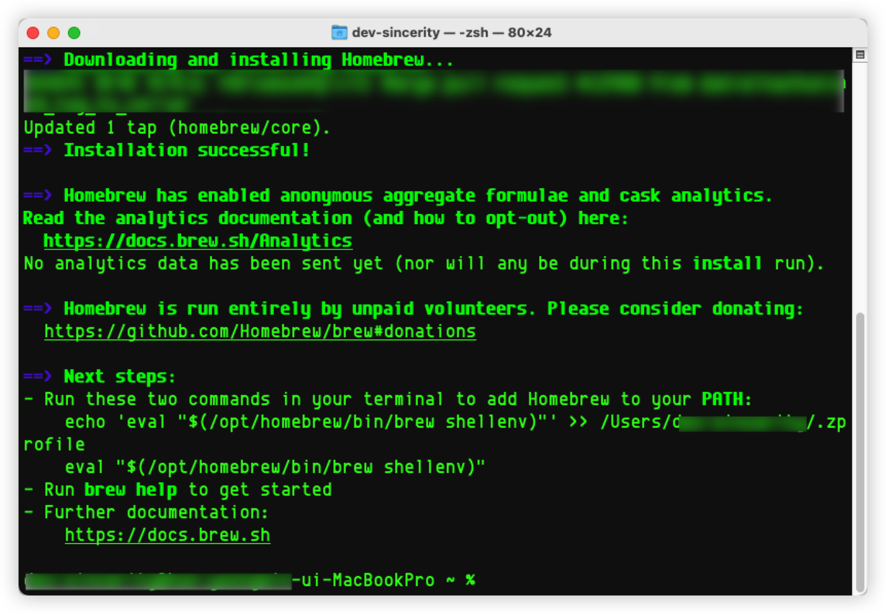 $ /bin/bash -c "$(curl -fsSL https://raw.githubusercontent.com/Homebrew/install/HEAD/install.sh)"