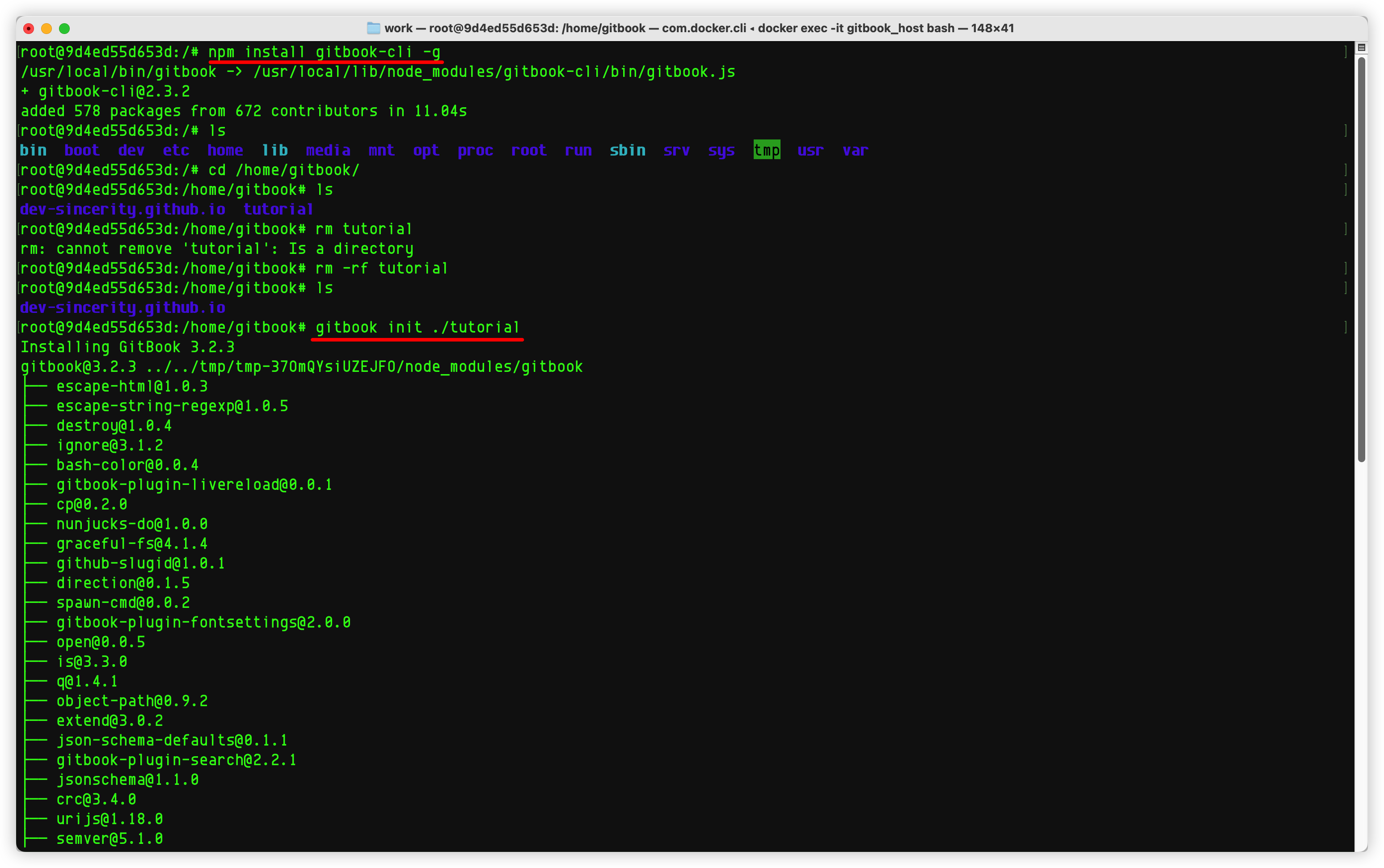 $ gitbook init ./tutorial // gitbook /home/gitbook/tutorial 경로에 생성