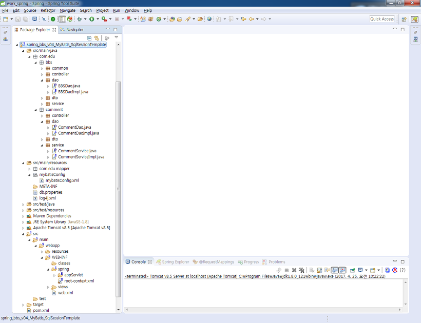 root-context.xml을 열어 MapperFactoryBean 객체를 추가해줬던 코드를 주석 처리한다.