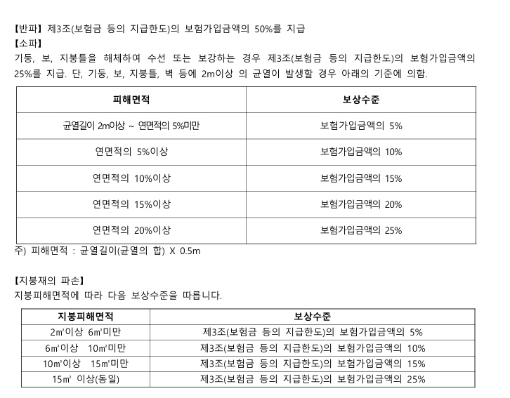 표의 헤더(컬럼명) : |피해면적|보상수준|