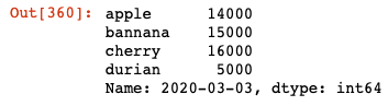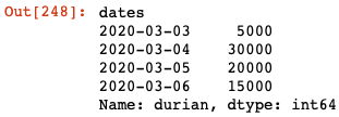 해당 Series를 보면 durian의 각 날짜별 가격이라는 것을 알 수 있습니다.