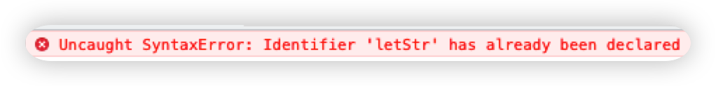 // 재선언 불가 에러 : Uncaught SyntaxError: Identifier 'letStr' has already been declared
