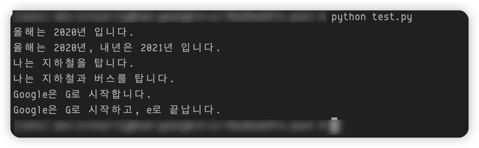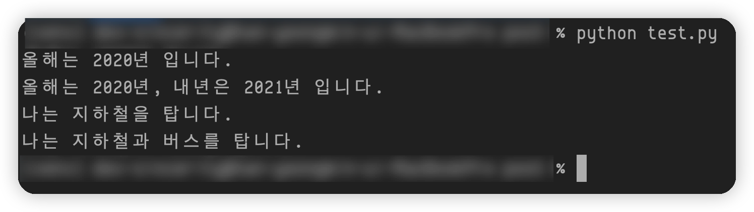 print("나는 %s과 %s를 탑니다."%('지하철','버스'))