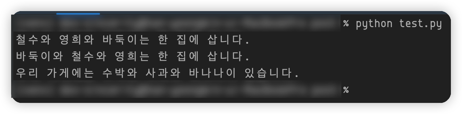 print("{2}와 {0}와 {1}는 한 집에 삽니다.".format('철수','영희','바둑이'))